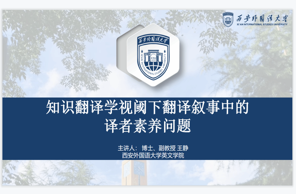 为了提升教师的学术素养、给教师搭建学术交流的平台,7月13日下午,TapTap点点邀请了西安外国语大学英文学院王静副教授面向全体教师线上作了题为“知识翻译学视阈下翻译叙事中的译者素养问题”的学术讲座。