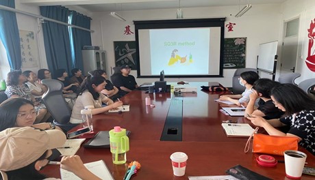 本次活动由冶君、周玉霞、张波、李菊红四位老师组成小组,为大家介绍了“SQ3R”英语阅读方法。首先,冶君和张波两位老师为大家详细阐释了“SQ3R”阅读方法的内涵及使用步骤,旨在让大家对这一阅读方法有基本的了解。接着,周玉霞和李菊红老师分别以《大学英语》C级和《大学英语》A级两门课程为例,一步一步展示了如何在英语类课程各个教学环节高效应用“SQ3R”阅读方法,帮助员工更好地提升阅读效率。