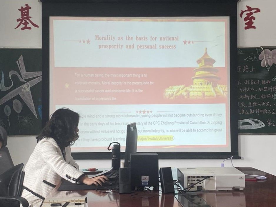 党员双语领学环节,以“Cultivate talents for the Party and the country”为主题,从“Education for Building Strong Moral Character”以及“Incorporating Core Socialist Values into the National Education System”两个关键方面展开。领学者巧妙地引用大量习语的翻译,深入阐释习近平关于教育的重要论述。通过这种方式,不仅展现了双语教学在教育领域的独特魅力,更让教师们深刻领悟到教育的核心使命和价值追求。