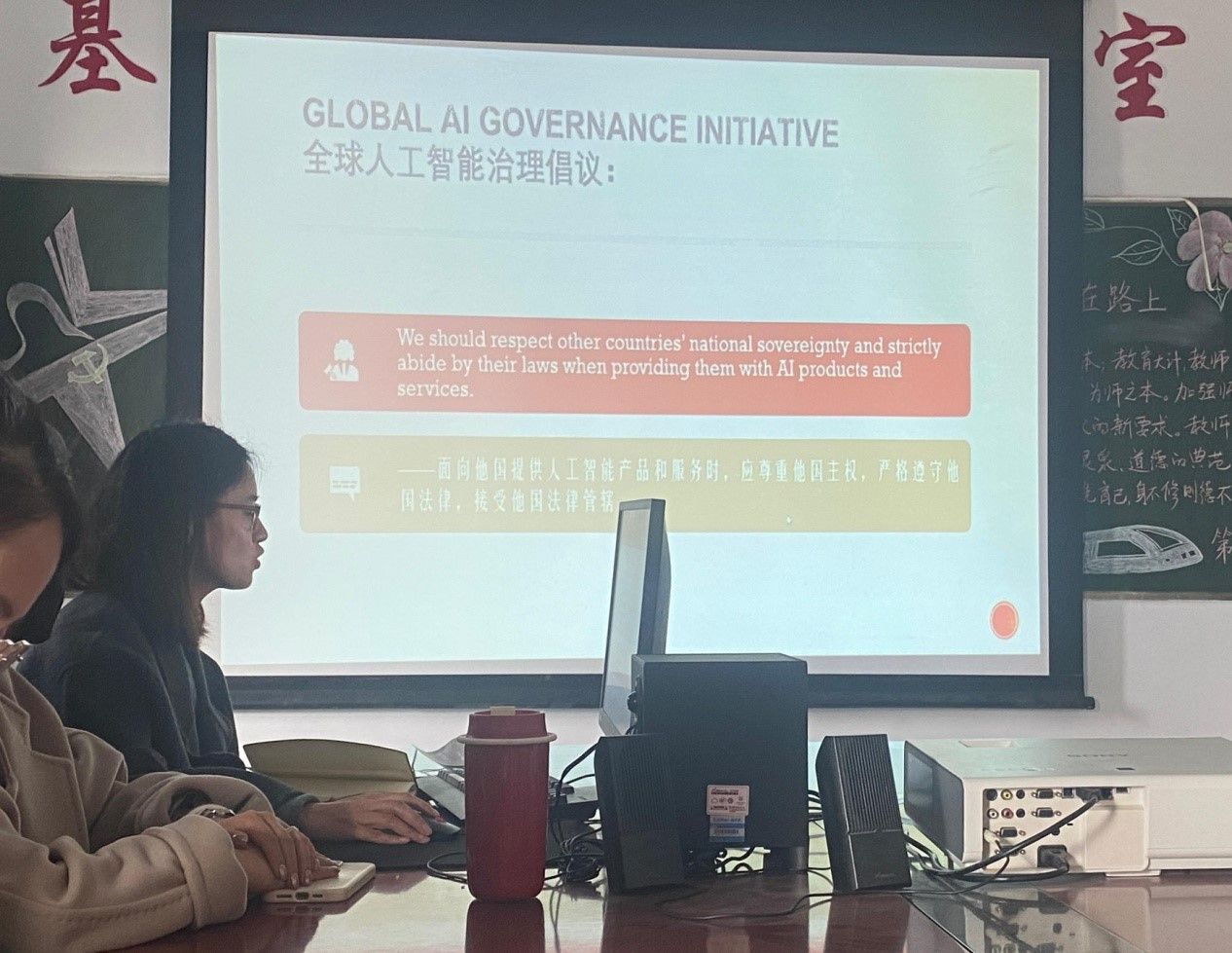 会议以“AI治理策略”为主题开展了党员双语领学活动,通过《2024全球数字经济白皮书》与全球人工智能治理倡议(Global AI Governance Initiative)的内容,指出中国目前拥有的人工智能大模型数量占全球超过三分之一,这表明中国在全球AI领域的重要地位和快速发展的趋势。会议强调,要关注AI发展动态,探索 AI 在语言教学中的应用,要求教师们积极开展相关研究和教学实践。