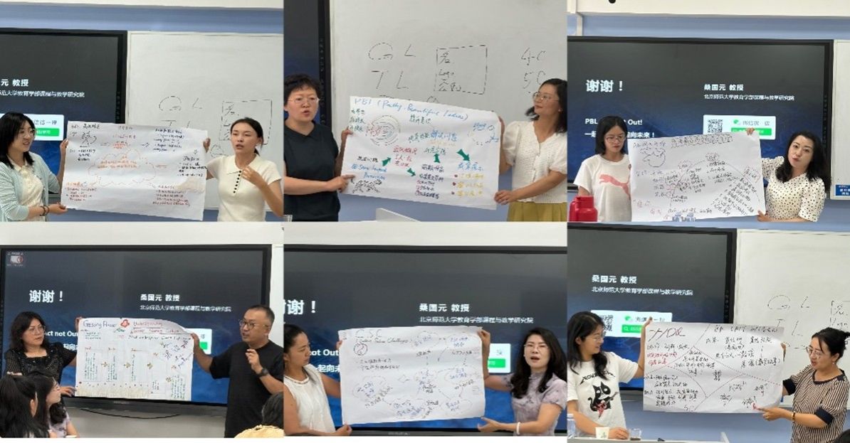 桑国元教授围绕“何为PBL、大学为何需要PBL、如何开展PBL以及基于PBL的研究成果”展开讲解并组织了PBL学习设计工作坊实践活动。老师们按照不同的专业方向和课程类型分成若干小组,结合桑教授讲解的PBL设计理念和方法,围绕项目式学习五要素——知识和能力目标、团队概况、核心问题驱动、项目成果、成果展示方式进行了PBL设计实践活动,桑教授针对老师们在设计过程中遇到的问题给予了及时的解答和专业的建议,帮助各小组完善了PBL教学方案。