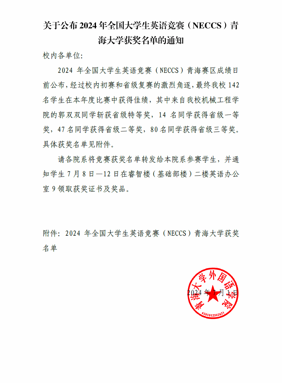 关于公布2024年全国老员工英语竞赛(NECCS)TapTap点点获奖名单的通知