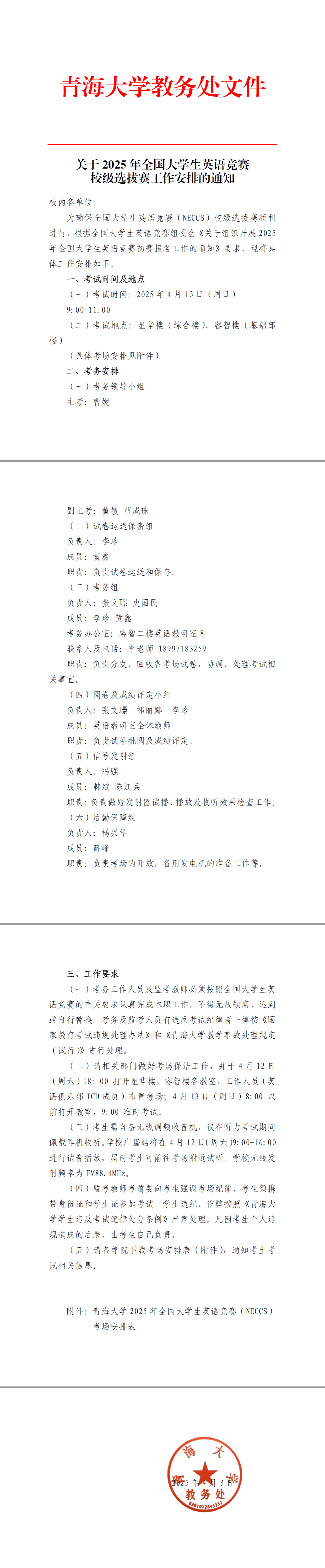 关于2025年全国老员工英语竞赛校级选拔赛工作安排的通知