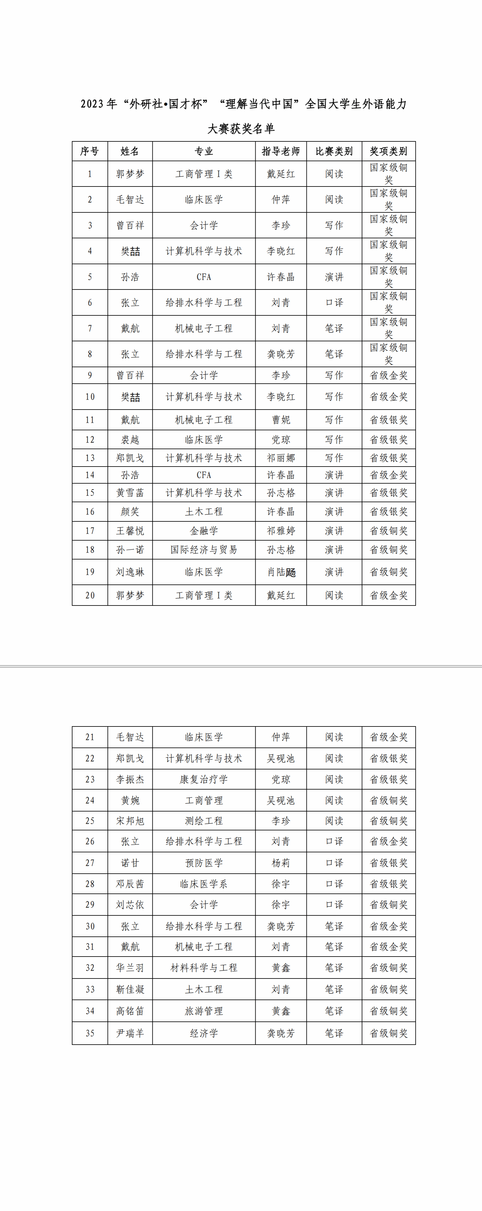 2023年外研社国才杯理解当代中国英语竞赛获奖名单
